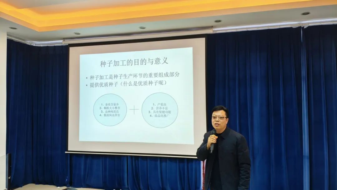 培訓會伊始,公司董事長張正平女士首先作了開班講話,她強調種子研發(fā)是推動企業(yè)發(fā)展的核心動力,而種子質量是企業(yè)的生命線。董事長要求全體員工以此次培訓為契機,將各部門操作流程內化于心、外化于行,通過培訓,深入了解種子生產(chǎn)、質檢及倉儲的關鍵環(huán)節(jié),確保每一位員工都能全面發(fā)展。不僅要培養(yǎng)專業(yè)領域的“專才”,更要培育熟悉全流程的“通才”,為企業(yè)的可持續(xù)發(fā)展儲備復合型人才。培訓會上,生產(chǎn)部經(jīng)理衛(wèi)萬娟圍繞“種源合法合規(guī)”展開培訓,詳細講解了種子的“身份證”以及生產(chǎn)田選用、田間去雜以及收獲等關鍵環(huán)節(jié)的操作標準,她強調,種子生產(chǎn)上的每一步都必須精益求精,種子生產(chǎn)全程跟蹤管理,實現(xiàn)從源頭保障種子純度。加工儲運部經(jīng)理陸永亮從種子分選、精準烘干工藝及科學存儲條件等核心內容就種子加工及倉儲管理進行了專業(yè)培訓,他通過視頻演示新型包裝設備操作流程,生動展示了如何運用現(xiàn)代技術手段確保每粒種子都保持最佳狀態(tài)。下午質檢部經(jīng)理任仰濤在培訓中系統(tǒng)講解了種子質量檢驗的關鍵要點,他分別從田間檢驗和室內檢驗兩個維度闡述了檢驗工作的重要性,并重點解讀了種子純度和凈度的檢測標準與方法,他強調種子檢驗的意義就是保證品種品質,高品質種子是保證種子發(fā)芽率的基礎,而發(fā)芽率是決定種子播種價值的重要指標。在技術層面,任經(jīng)理詳細講解了田間檢驗中的品種真實性核查方法,以及室內檢驗中采用的形態(tài)鑒定、分子檢測等多種純度檢測技術。會后生產(chǎn)部衛(wèi)經(jīng)理還現(xiàn)場演示了倉庫簽樣以及室內水分測定、發(fā)芽試驗等關鍵檢測項目的標準操作流程,讓參訓人員直觀了解各項指標的檢測要點。她要求檢驗人員必須嚴格把關每一個環(huán)節(jié),為公司的種子質量保駕護航。
